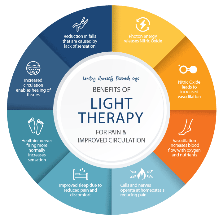 After just 20 minutes of light therapy, blood flow is increased to nerves and other tissues, and this boost in local circulation lasts for several hours.